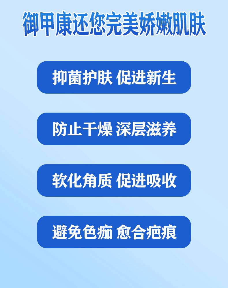抑菌润肤、促进新生、深层滋养皮肤、防止干燥。